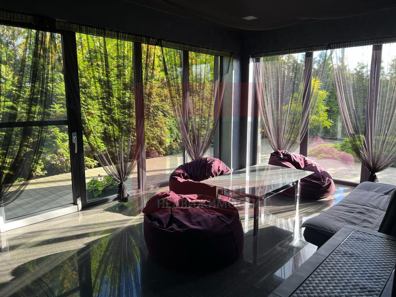 Панорамное остекление во всем доме. Дом оснащен бытовой техникой от известных производителей и мебелью, освещение и текстиль подобрано специально для этого проекта.