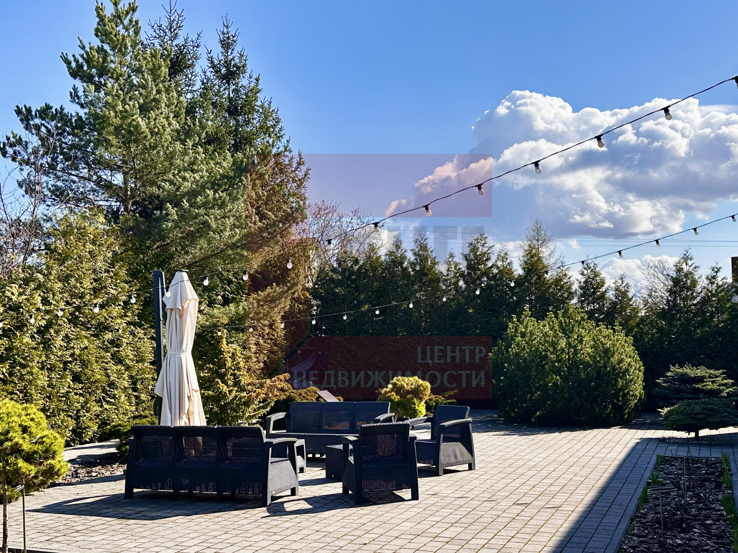 Придомовая территория огорожена забором и высокими туями. Оборудована зона отдыха на улице.