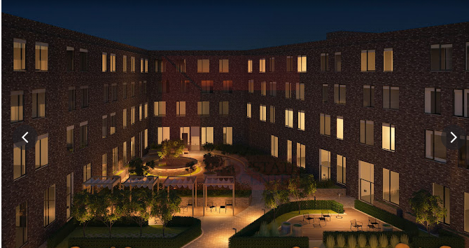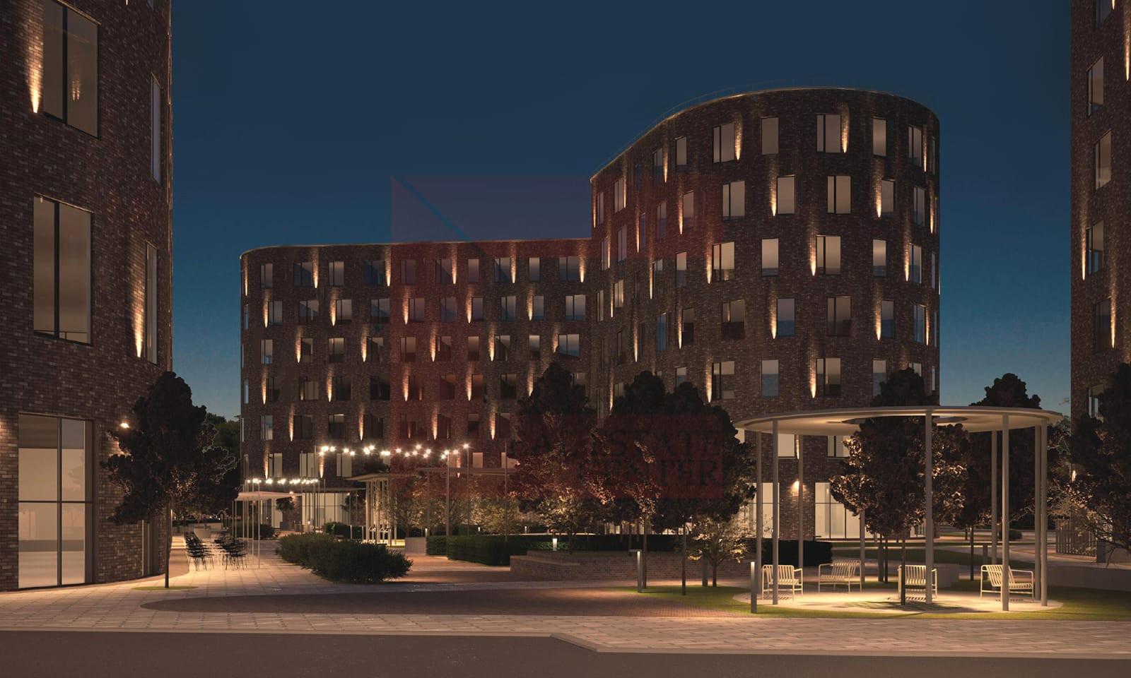 Все строения связаны между собой благоустроенной зелёной зоной — центральным бульваром.