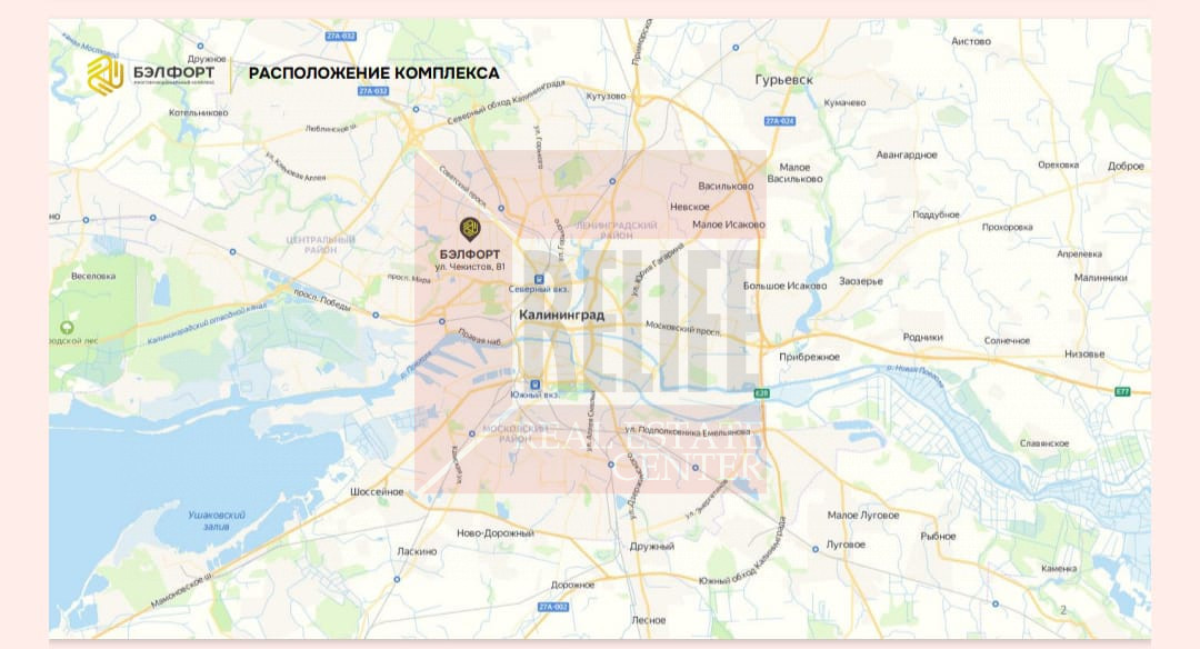 Премиальный бизнес-парк БЭЛФОРТ нового поколения находится в исторической части Центрального района города Калининграда. Отличная транспортная доступность, высокий автомобильный трафик, остановки общественного транспорта позволяют легко и быстро добраться до места расположения из любой части города. Поблизости расположены рекреационные объекты, а также объекты туристической и спортивной инфраструктуры, архитектурные достопримечательности.