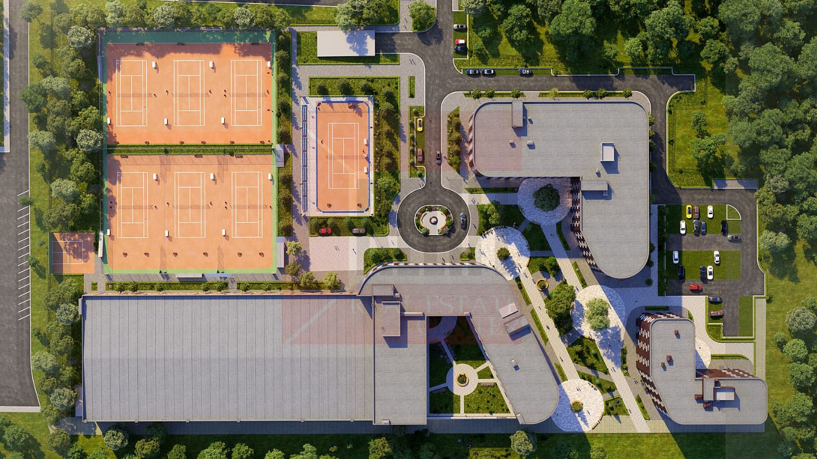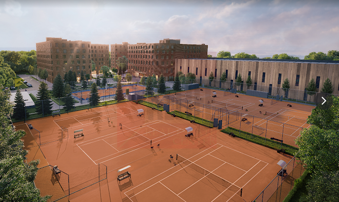◉ Центр развития тенниса с 12 кортами (6 закрытых кортов с покрытием «хард» и 7 открытых корта с покрытием «грунт»)
