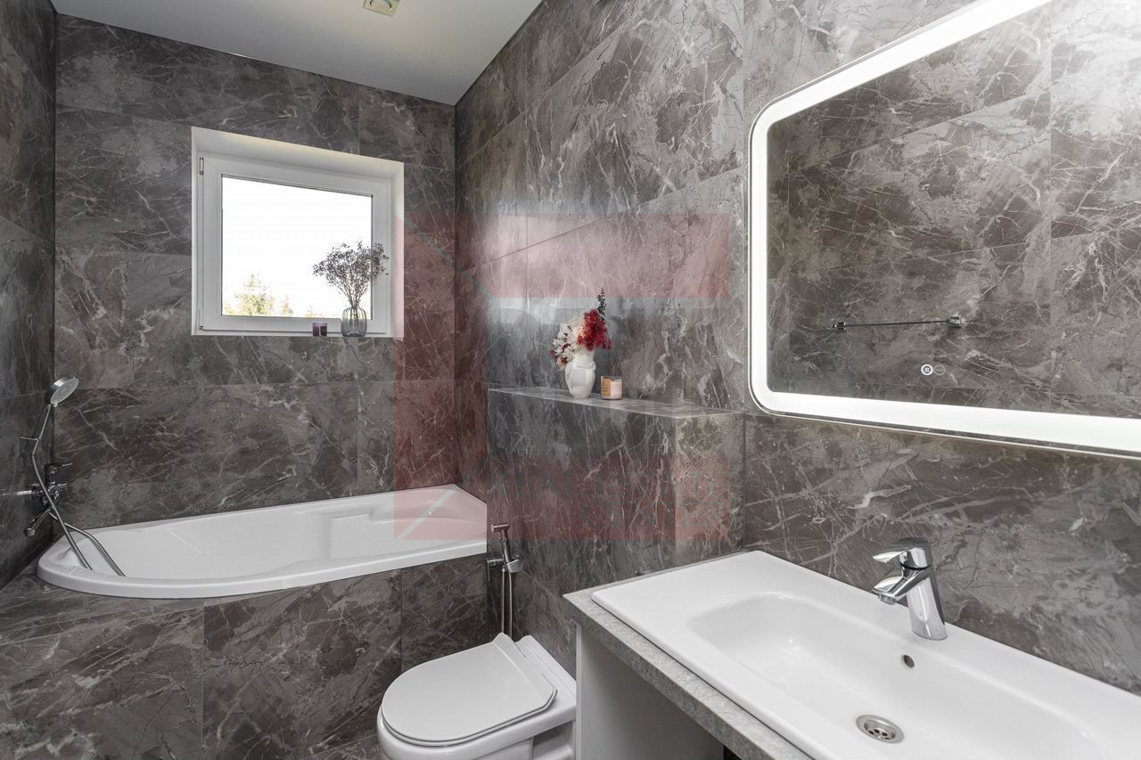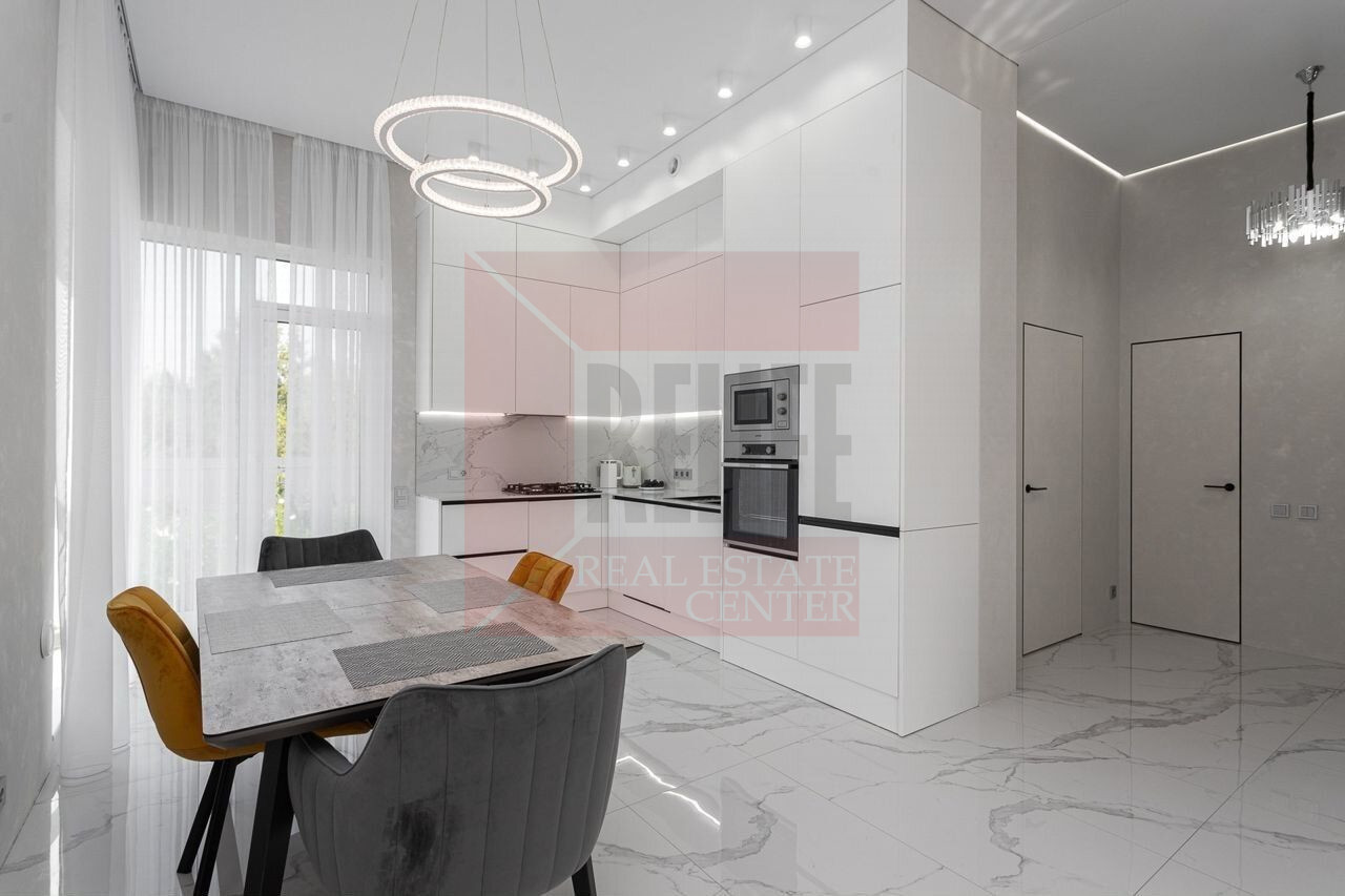Строгость линий, правильность форм и идеальность пропорций главная концепция внутренней отделки дома. Предметы декора стилизуют и дополняют дом. За счет масштабного остекления дом просторный и комфортный для жизни и отдыха. В качестве искусственного освещения выбраны лаунж приборы с мягким равномерным свечением и светодиодные ленты, установленные по периметру потолка, которые добавляют помещениям высоты и легкости. Дом полностью укомплектован новой мебелью и функционально встроенной техникой ведущих европейских брендов. Функциональность, которая стоит во главе выбора, позволяет избавиться от лишнего и предусмотреть место для важного.