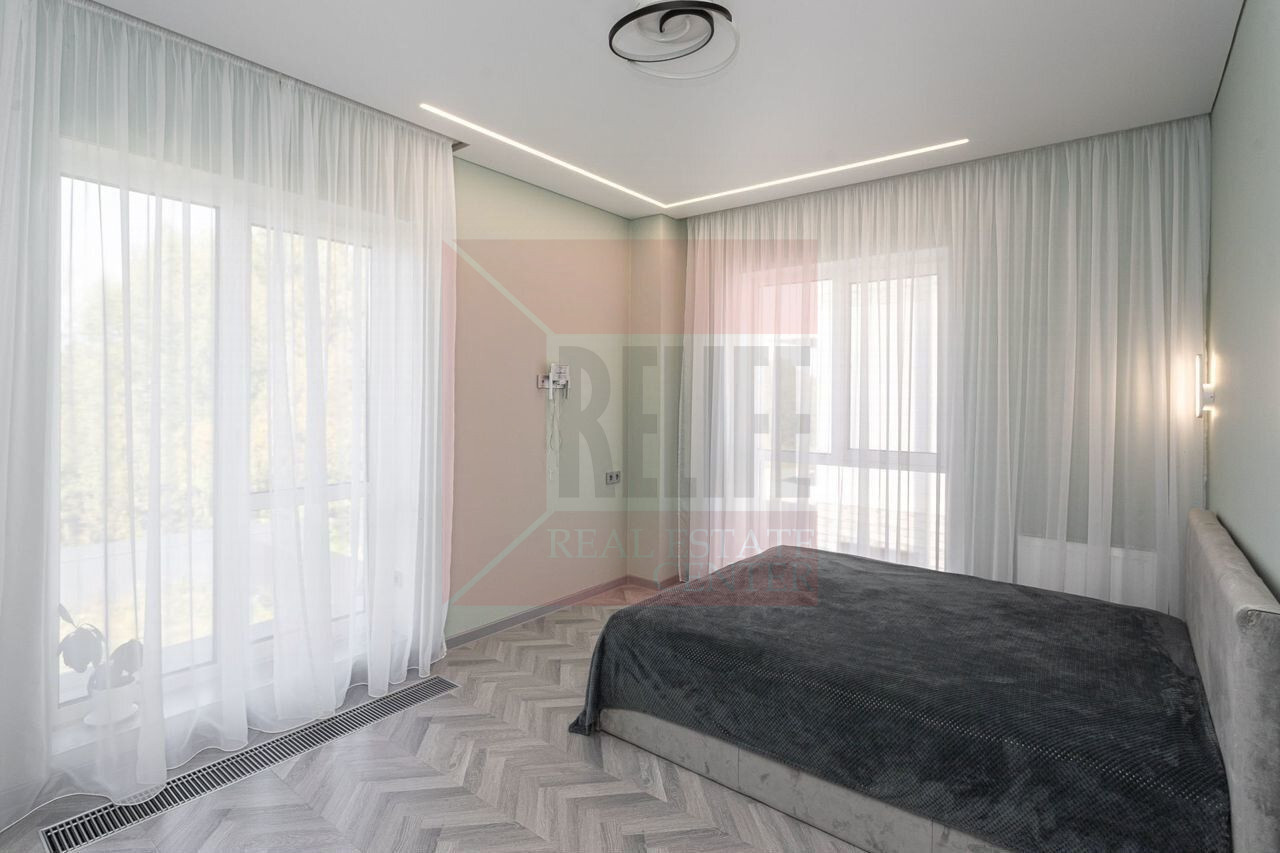 2-й этаж: имеет общую площадь в 90 кв. м. , мастер спальня 17,50 кв. м. с выходом на просторный балкон, кабинет, детская комната в 15,40 кв. м., ванная комната 5,58 кв. м.