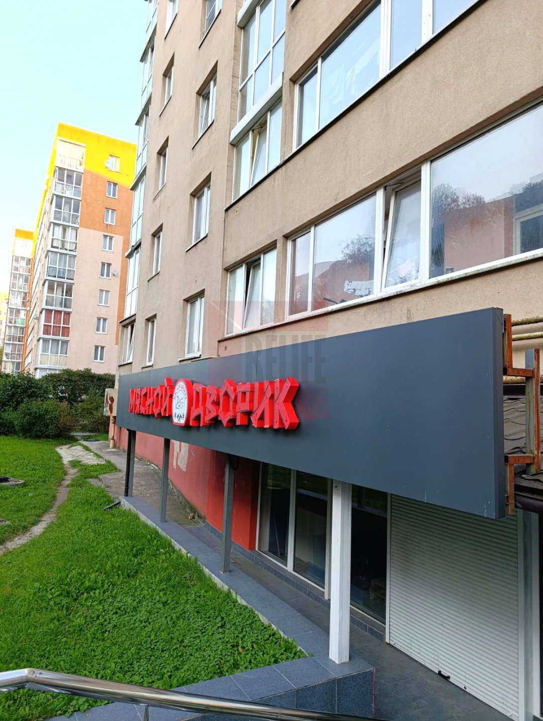 - на высоком цокольном этаже девятиэтажного жилого дома