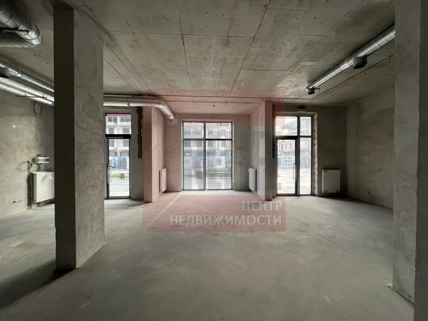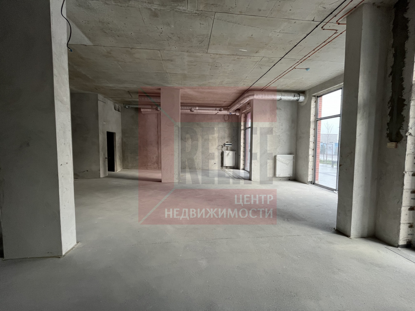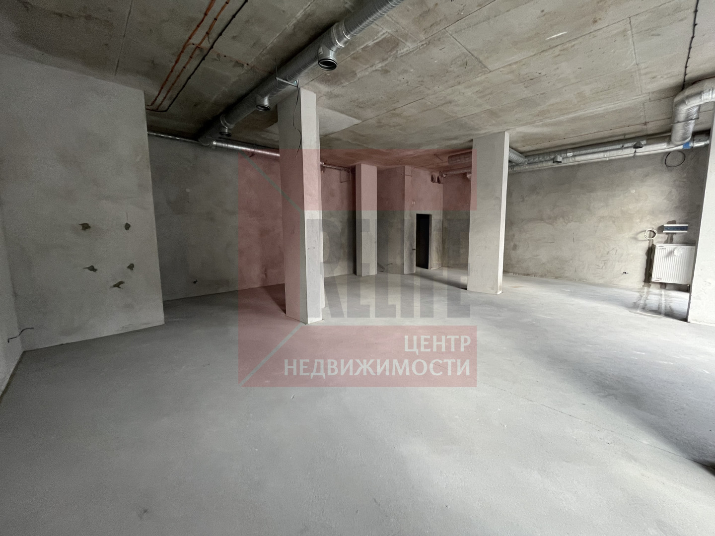 Помещение в сером ключе. Стены оштукатурены, выполнена электрическая разводка, смонтирована приточно-вытяжная система вентиляции.