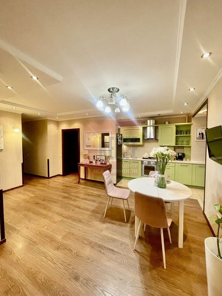 Планировка квартиры функциональна и продумана до мелочей, что обеспечивает достойное и комфортное проживание. Общая площадь квартиры 60 кв.м., кухня- гостиная, спальня 17 кв.м, совмещенный санузел, комнаты на разные стороны. Квартира расположена на 5-ом этаже десятиэтажного жилого дома. Окна выходят как на тихий двор, так и на улицу, поэтому в квартире всегда светло и уютно.