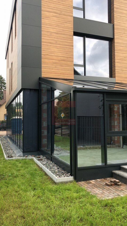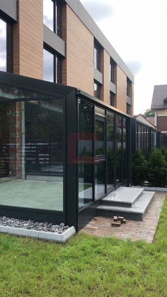 Таунхаус построен по авторскому архитектурному проекту. При строительстве использовались только качественные материалы. Все стены выполнены из тёплого керамического блока толщиной 380 мм, утеплённый фасад облицован HPL панелями, тёплые и надёжные алюминиевые окна, входные двери Hoermann, центральные сети и Интернет, автономное отопление, 15 Квт электроэнергии. Зимний сад с энергосберегающим остеклением. Центральные коммуникации с подземным подключением, что не нарушает гармоничный вид участка. Предусмотрена система кондиционирования и вентиляции.