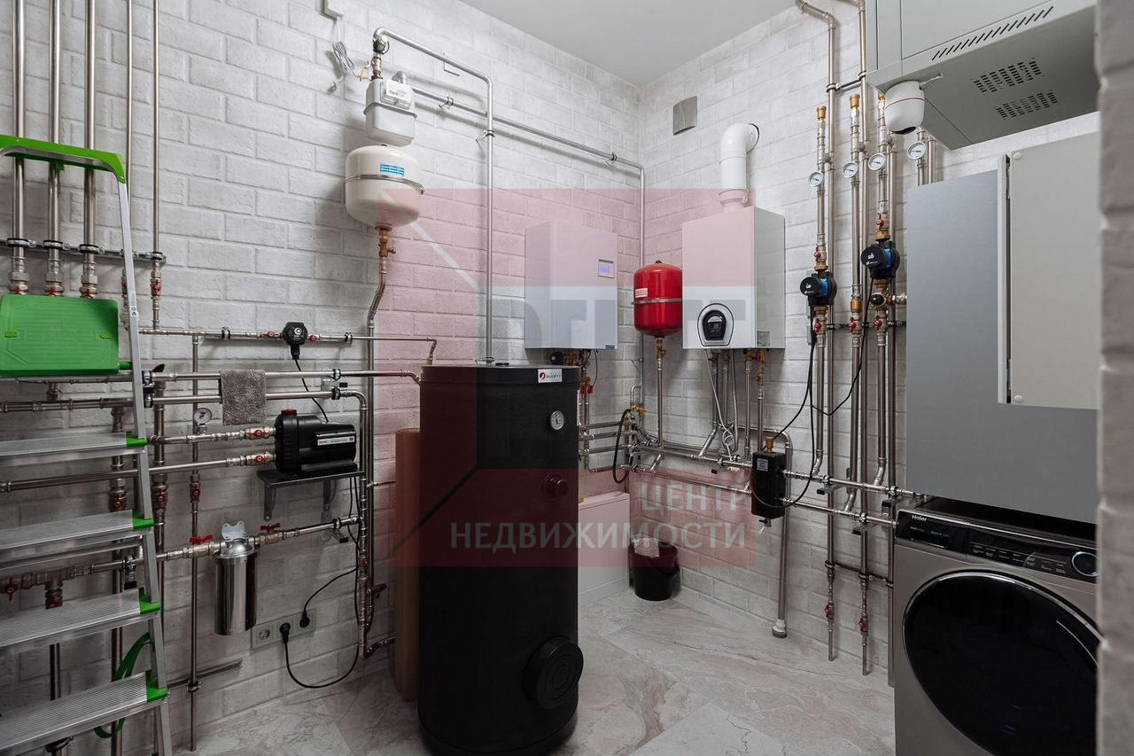 Топочная: Внутренняя объвязка из нержавеющих труб, два котла газовый и электрический, бойлер, рециркуляция.