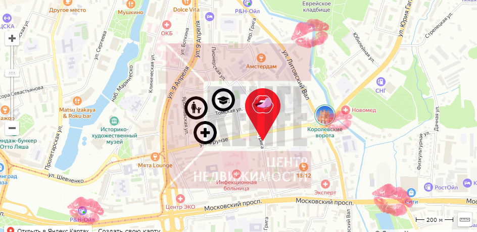 ЖК «Поцелуй» находится в непосредственной близости от объектов культурного наследия федерального значения «Крепость Фридриха Великого» - 1759 год и «Городские ворота №1» («Королевские ворота») - 1795 года. Вся инфраструктура в шаговой доступности, а также променад реки «Преголя» и озера «Нижнего».