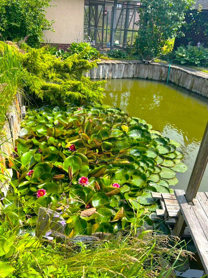 • Просторный участок: Участок обрамлен ограждением, что создает атмосферу уединения и безопасности. Здесь есть отдельный гараж на две машины, так что вам не придется беспокоиться о парковке. А еще на участке вас ждет уютная беседка с мангалом — идеальное место для летних вечеринок с друзьями и семейных ужинов на свежем воздухе. Виноградная аллея и пруд с розовыми лилиями добавляют особую атмосферу спокойствия и красоты. Также на территории есть двухэтажная постройка, которая использовалась как курятник.