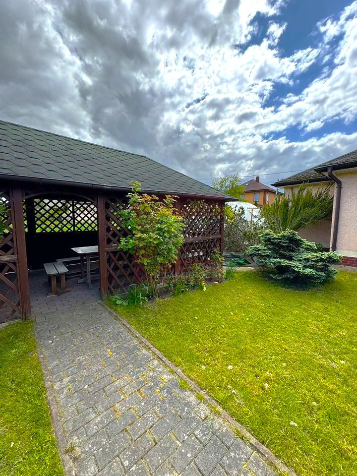 • Современные удобства: В доме установлена сигнализация для вашей безопасности, а на окнах — рольставни, которые защитят вас от лишних взглядов и помогут регулировать свет. Просторная кухня-столовая станет сердцем вашего дома, где будут собираться родные и близкие. А высокие потолки создают ощущение простора и свободы.