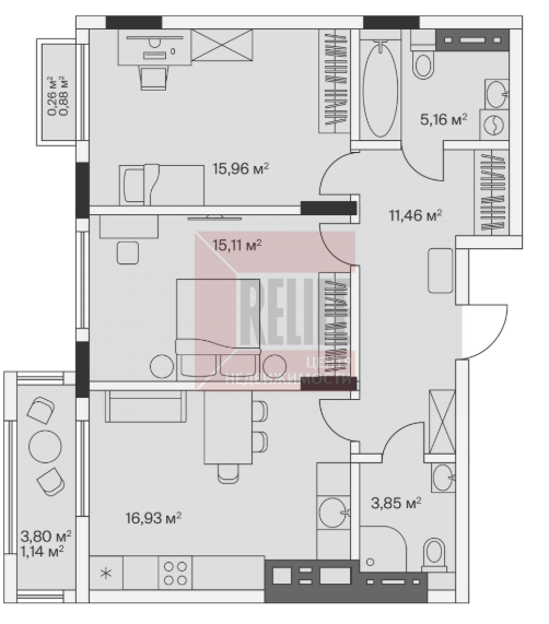 15.96 кв.м.
